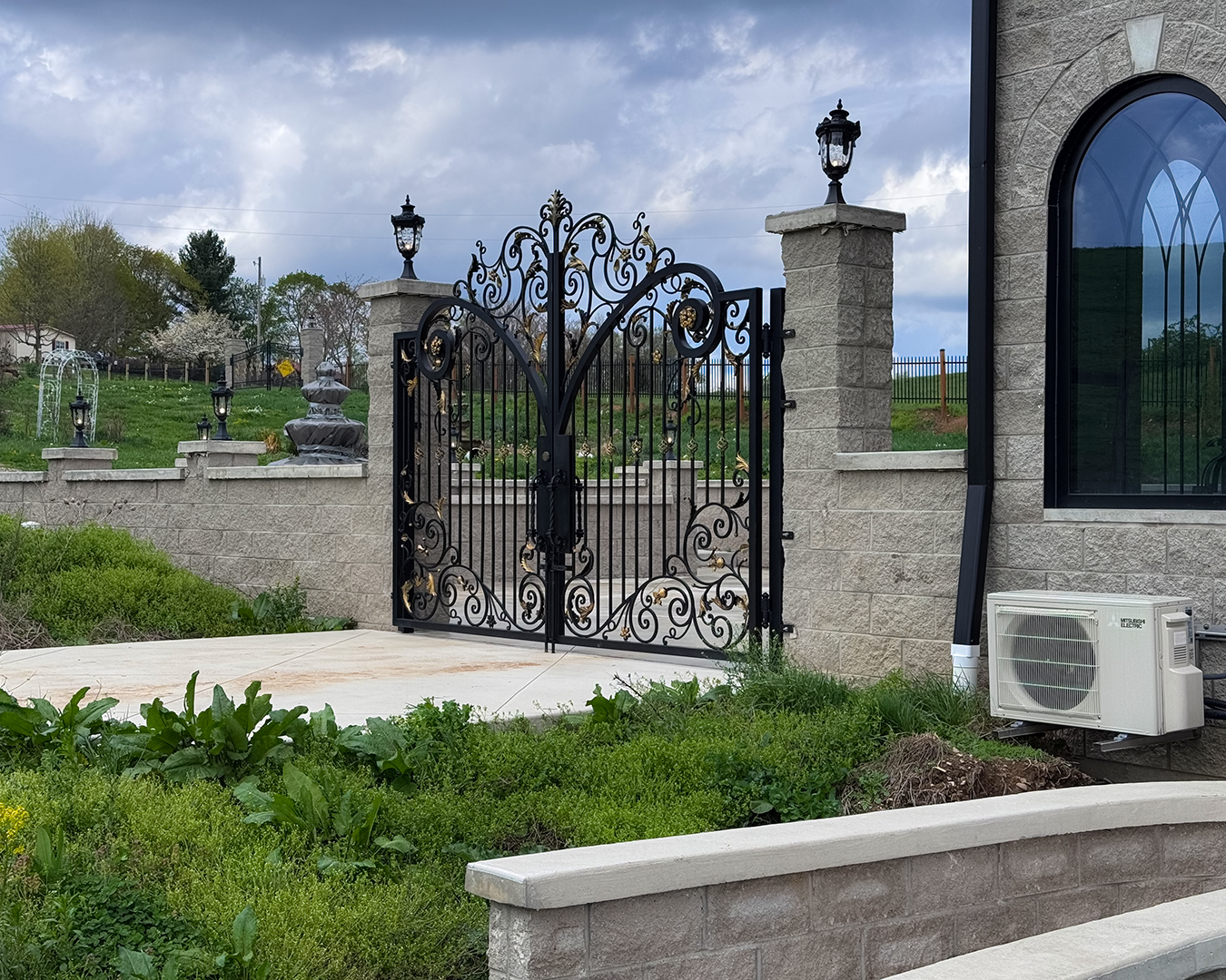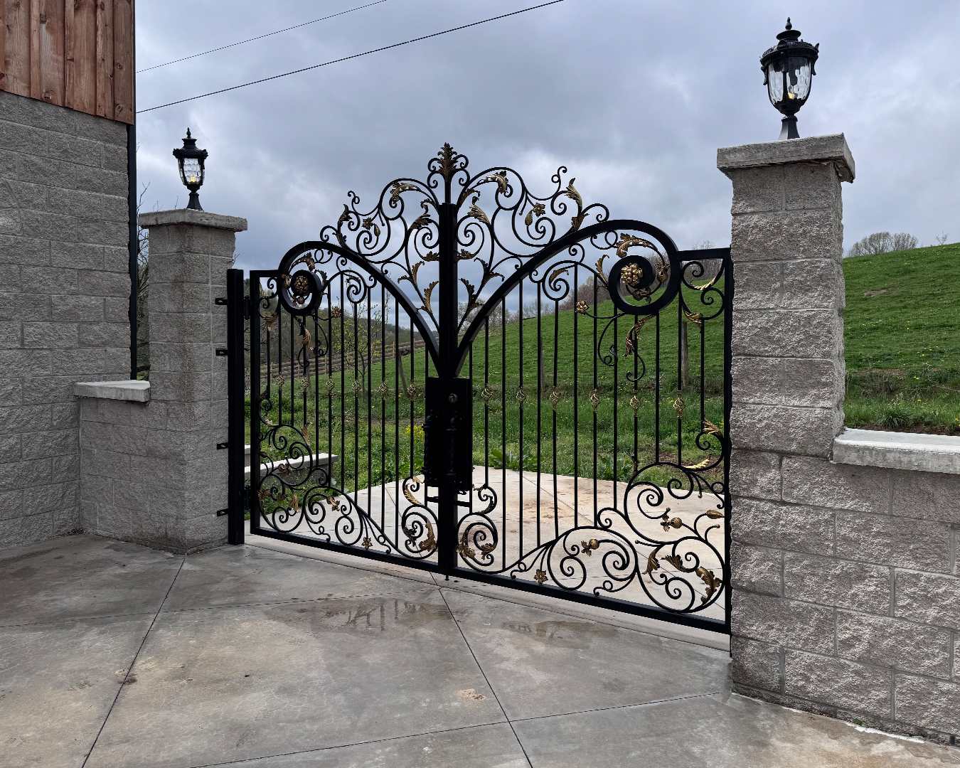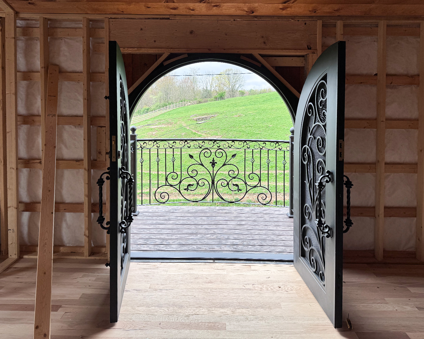 We have completed the Wrought Iron Doors, Driveway Gates and iron railings, installation in the Scio farm wedding venue. Vintage wrought iron artistry seamlessly merges with the majestic wedding hall, transforming the entire space into a solemn yet breathtakingly artistic ceremony venue.