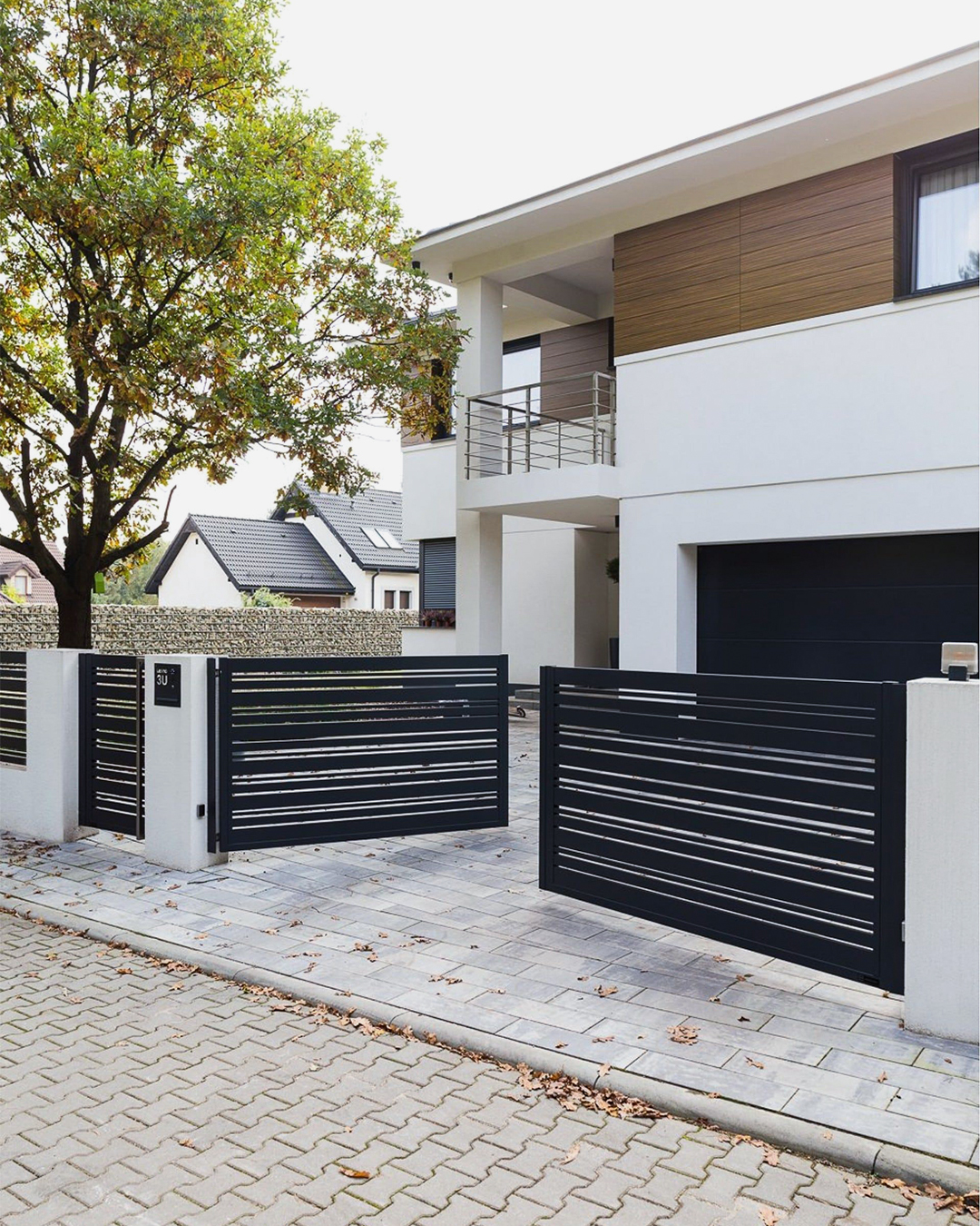 Our premium aluminum driveway gates combine sleek contemporary design with superior engineering, making them an excellent choice for modern, luxury, and transitional homes. These gates offer an outstanding strength-to-weight ratio — significantly lighter than steel or iron yet incredibly strong and rigid. This results in smooth operation, reduced stress on hinges and motors, and effortless automation for sliding or swing configurations.