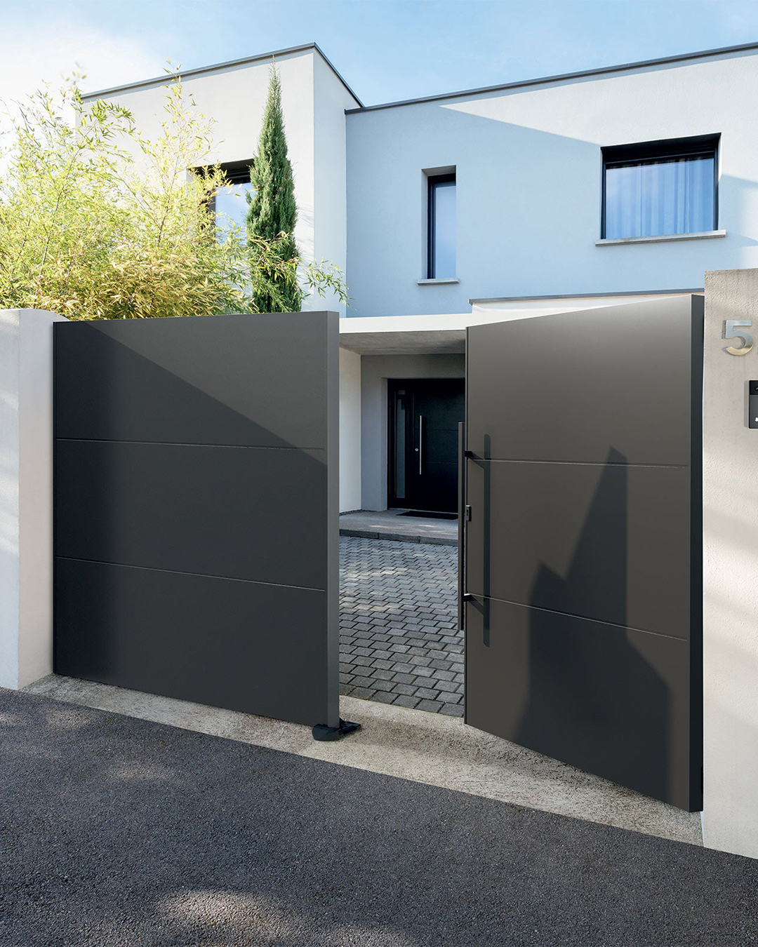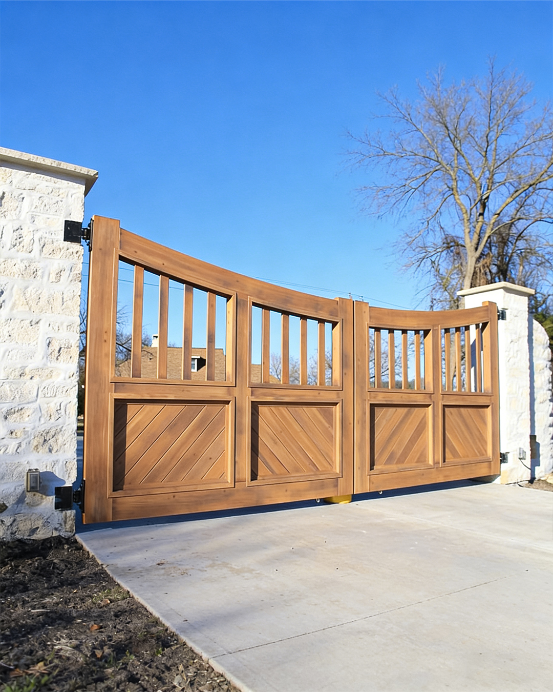 Available in cantilever sliding gates, double or single swing gates, and custom designs, aluminum driveway gates provide a clean, minimalist aesthetic with slim profiles, geometric patterns, and expansive open or privacy styles. They can be powder-coated in a wide range of durable colors to perfectly complement your home’s architecture and enhance curb appeal.