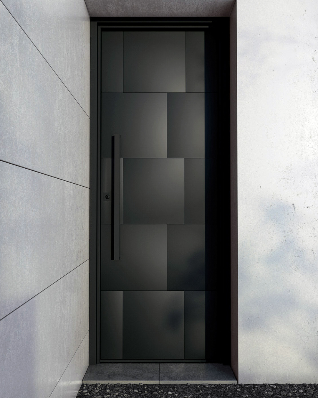Our modern cast iron front doors feature clean, minimalist aesthetics with bold geometric patterns, flat panels, and subtle linear detailing — perfectly matching the sleek contemporary style shown in the images. These doors deliver a sophisticated, architectural entrance that enhances curb appeal.
