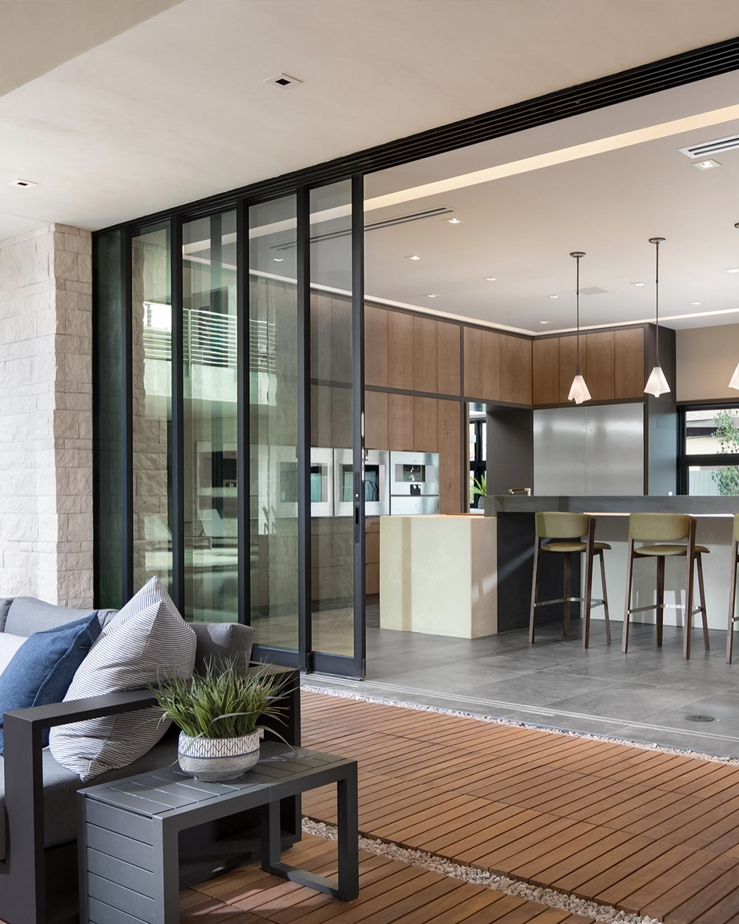 Our Multi-Slide Doors deliver the ultimate in modern indoor-outdoor living. These sophisticated multi-panel sliding door systems allow multiple large glass panels to stack or slide smoothly to one side, creating dramatically wide openings — from standard walls to entire corners of your home. When opened, the panels stack neatly to one side or retract into pockets, providing an exceptionally wide, unobstructed opening that seamlessly connects indoor and outdoor spaces.
