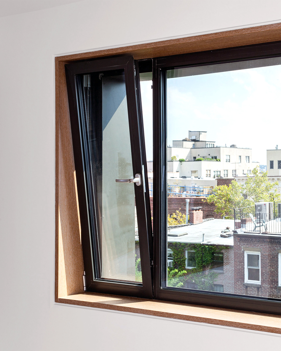 In tilt mode, the window opens slightly from the top, allowing fresh air to enter while keeping rain out and maintaining security — perfect for nighttime or rainy-day ventilation. In turn mode, the sash swings inward 180°, providing easy access for cleaning, emergency egress, and maximum airflow when needed.