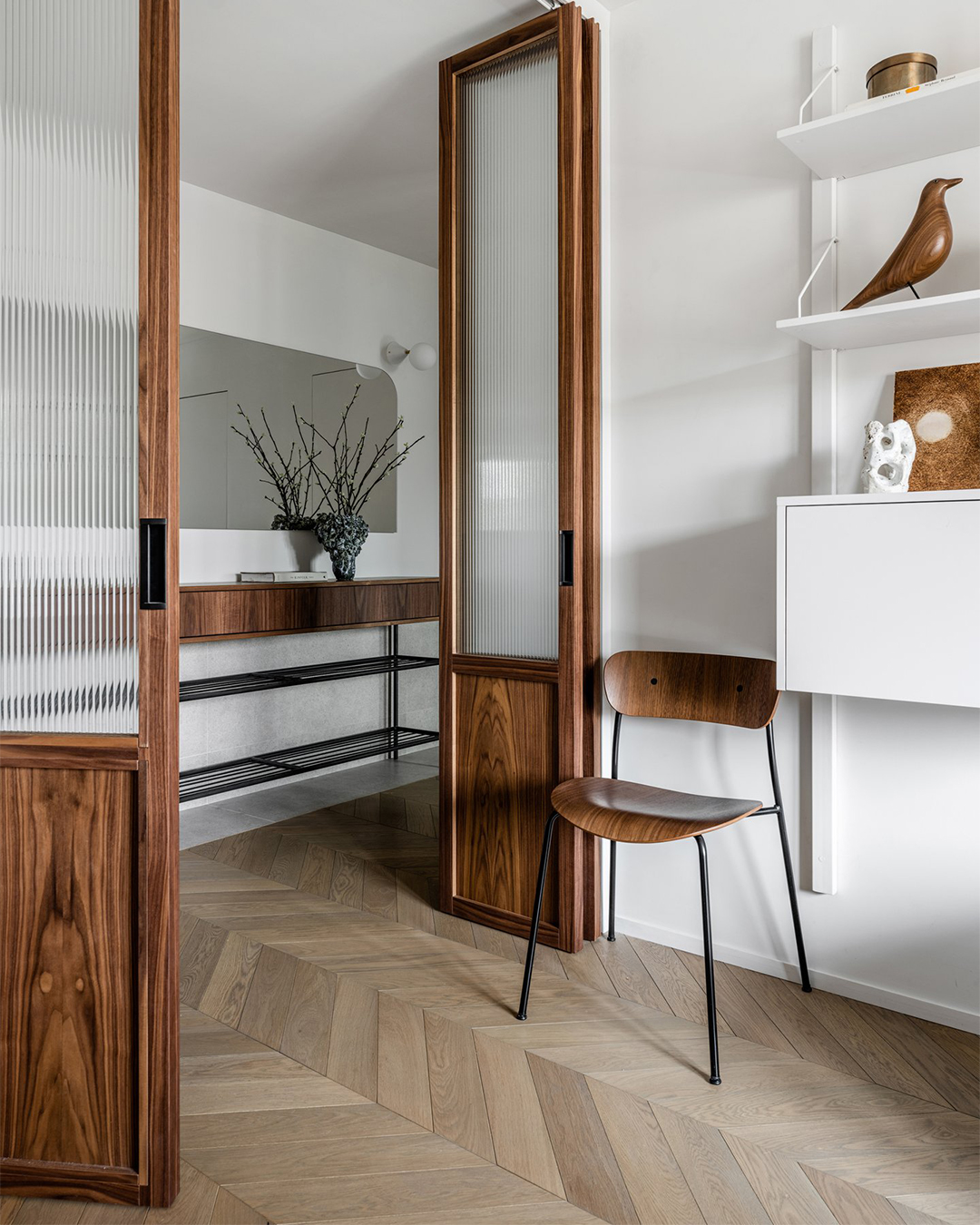 Folds compactly against the wall or into a pocket, maximizing usable floor space and creating wide openings when fully extended.Standard sizes or fully custom dimensions. Single bifold, double bifold, or multi-panel folding systems designed to fit your exact opening. Premium pivot and track systems with soft-close dampers, heavy-duty hinges, and anti-jump features for safety and smooth performance. Our artisans can create fully matching sets that coordinate with your hinged doors, barn doors, pocket doors, or other interior elements.