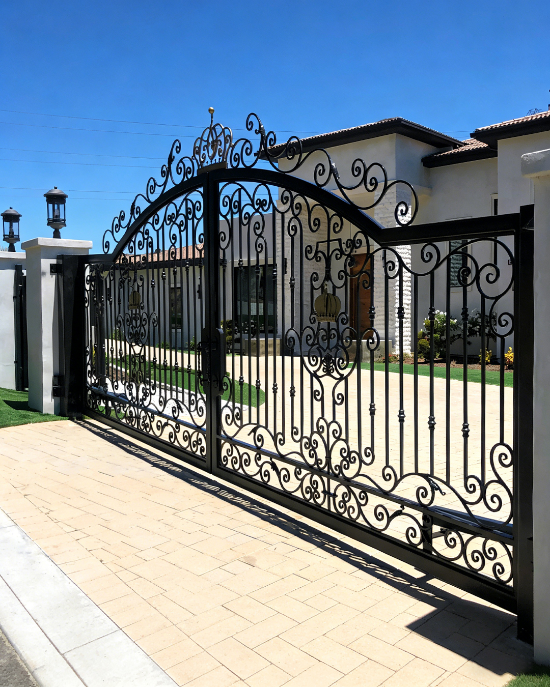 Our premium iron driveway gates, feature a sophisticated blend of classic wrought iron artistry and contemporary design. These stunning gates showcase intricate scrollwork, elegant curved motifs, geometric patterns, vertical bars, and decorative elements that create a grand, luxurious entrance for upscale homes, estates, and modern residences.