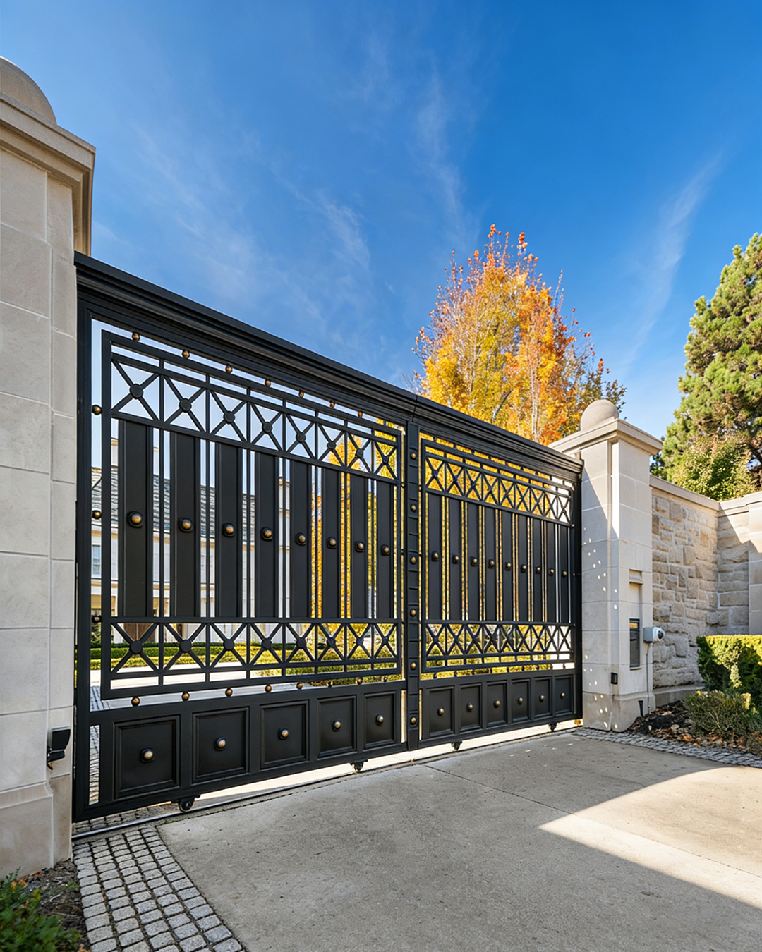 Our driveway gates support electric sliding (cantilever or track), electric swing (single or double leaf), and manual swing configurations. Electric models can be equipped with motors compatible with local North American voltage standards (110V/120V or 220V/240V), ensuring safe, reliable, and efficient performance. Fully welded rigid frames prevent sagging. These gates operate quietly and smoothly when paired with quality automatic operators, smart controls, keypads, or intercom systems, making daily access effortless and convenient.